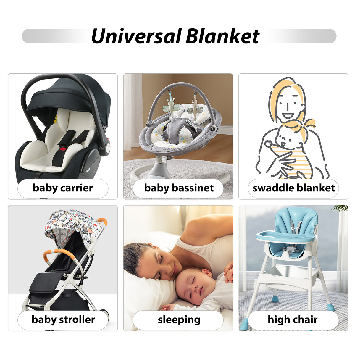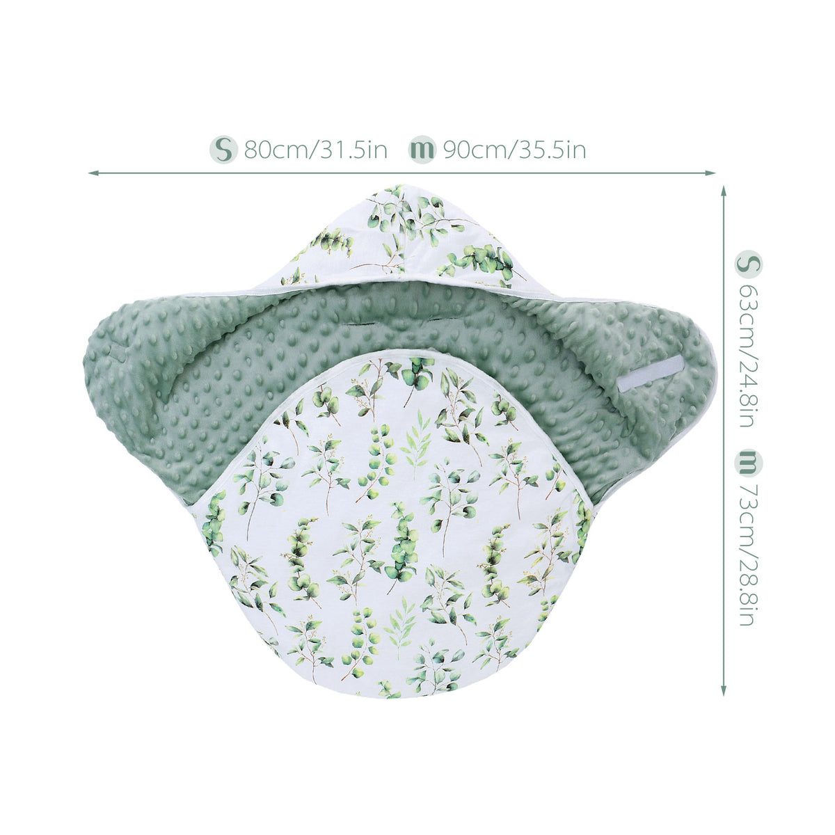 - 【UNIVERSAL SWADDLE BLANKET】 This minky baby swaddle blanket for stroller fits most car seats and baby carriers, wraps the child and provides comfort and security. Thanks to the large hood, it protects the child from the cold and wind. Ideal for travel, walks, at home and in the car. 24.8 x 31.5 inches for 0-6 Months; 28.8 x 35.5 inches for 6-12 Months.